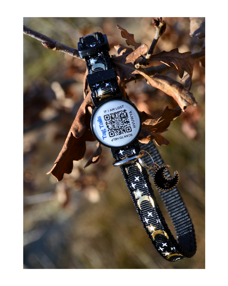 Luna Svart Reflex - Katt Halsband med Inbyggd QR